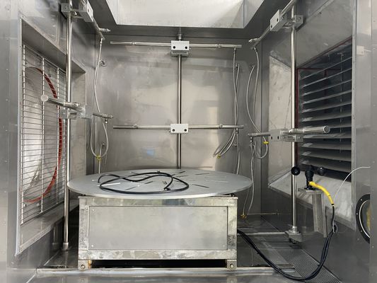 L'ugello IPX5, IPX6, IPX6K è un dispositivo rimovibile, quando il test IPX5, IPX6, IPX6K, il rack per getto di prova speciale viene spostato sull'apparecchiatura prima che la clip rapida sia fissata e quindi collegata con un raccordo rapido per il tubo dell'acqua. Poiché il test richiede che la distanza dell'ugello dal campionatore sia da 2,5 a 3,0 metri, il telaio dell'irrigatore mobile può fare un uso più efficiente dello spazio sperimentale e quando viene utilizzato, verrà spostato di lato e non occuperà il sito. Durante il test, esiste un dispositivo di isolamento per impedire all'acqua di fuoriuscire dall'apparecchiatura